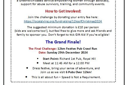 Greenwich Runners are Taking on the 12Ks of Christmas Challenge to raise £2,000, for Her Centre!